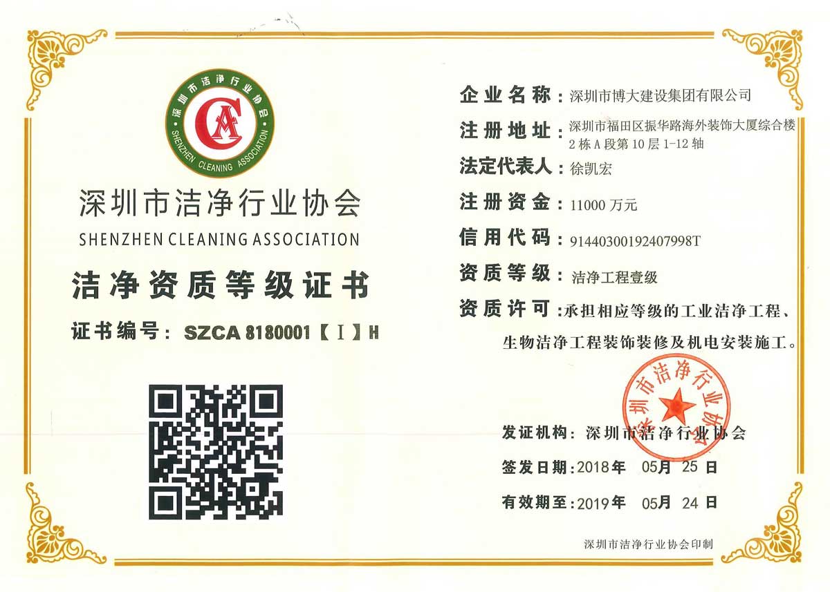 資質(zhì) | 博大建設(shè)集團(tuán)獲得潔凈工程壹級(jí)資質(zhì) | 醫(yī)療器械經(jīng)營(yíng)許可