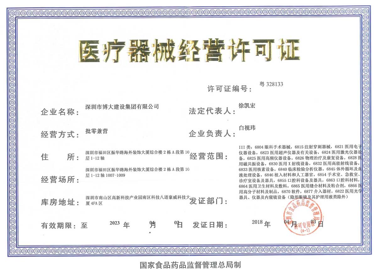 同期,博大還得到國(guó)家食品藥品監(jiān)督管理總局頒發(fā)的醫(yī)療器械經(jīng)營(yíng)許可證,在醫(yī)院、醫(yī)療相關(guān)領(lǐng)域服務(wù)功能更加完善,給客戶(hù)帶來(lái)了更多的選擇空間。