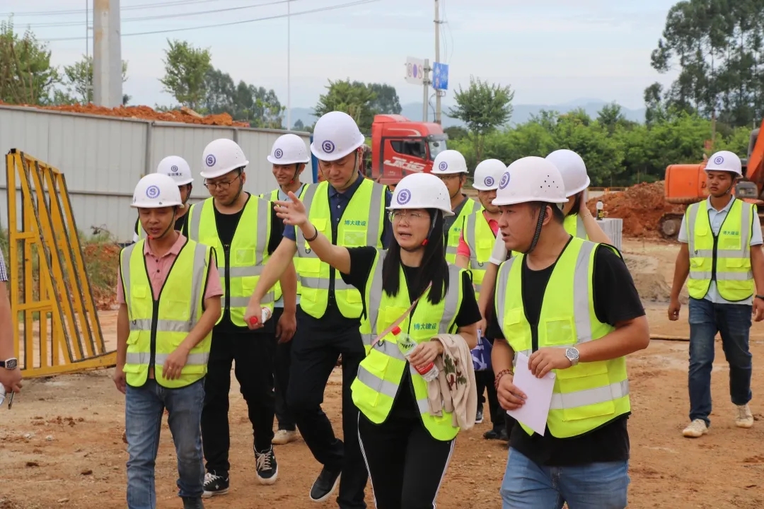 圖丨集團(tuán)副董事長(zhǎng)黃河(后排右五)、廣西分公司總經(jīng)理李培陽(yáng)(后排右四)視察項(xiàng)目