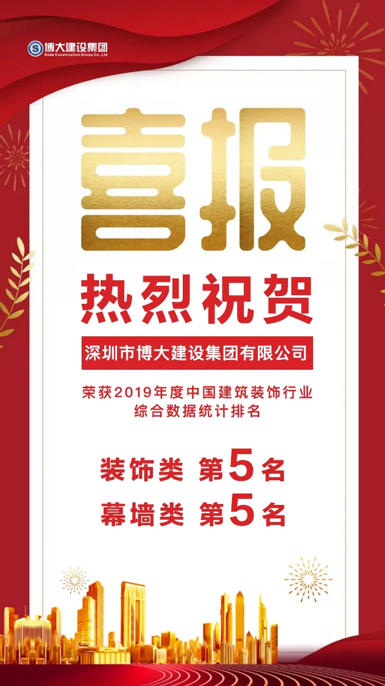 熱烈祝賀博大躍居中國建筑裝飾行業(yè)百強(qiáng)第五名!