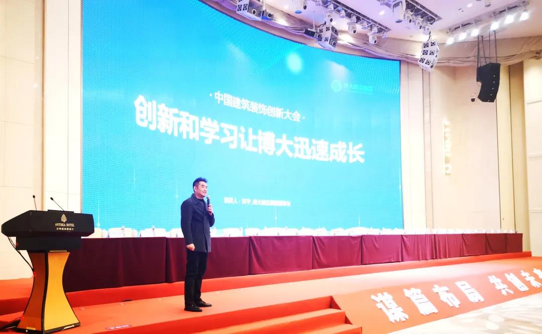 “創(chuàng)新和學(xué)習(xí)讓博大迅速成長。今天,我主要從三個(gè)方面為大家分享:管理模式創(chuàng)新,建立了利益共享的合伙人機(jī)制;文化創(chuàng)新,打造正能量的企業(yè)文化;持續(xù)學(xué)習(xí),不斷地掌握和運(yùn)用新的策略、工具和方法?!辈┐蟪蔀楸敬稳珖袠I(yè)排名發(fā)布大會(huì)唯一一家建筑裝飾企業(yè)上臺(tái)分享發(fā)展經(jīng)驗(yàn)。董事長洪宇的精彩演講引起現(xiàn)場企業(yè)家的熱烈反響。