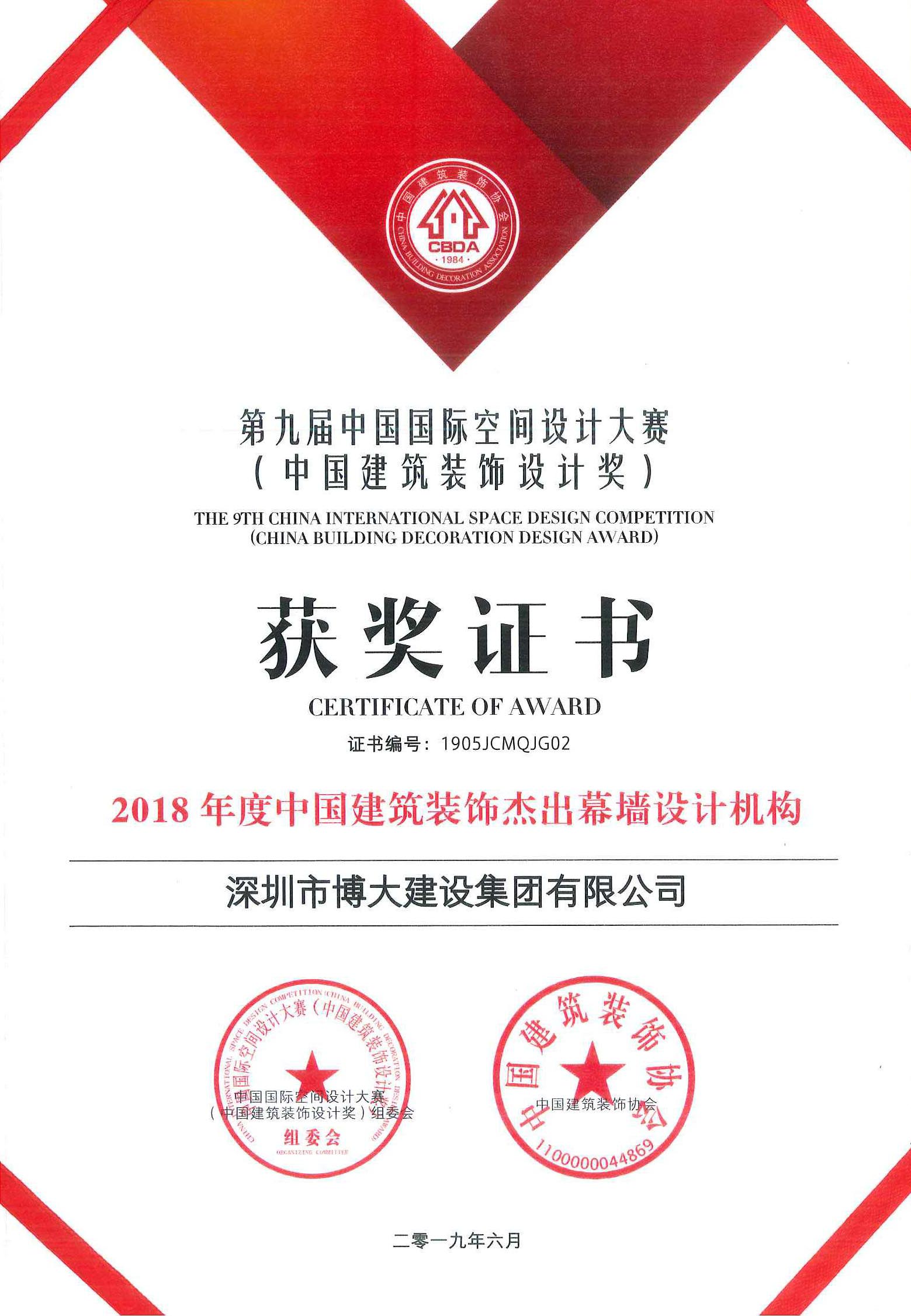 2018年度中國建筑裝飾杰出幕墻設(shè)計機構(gòu)