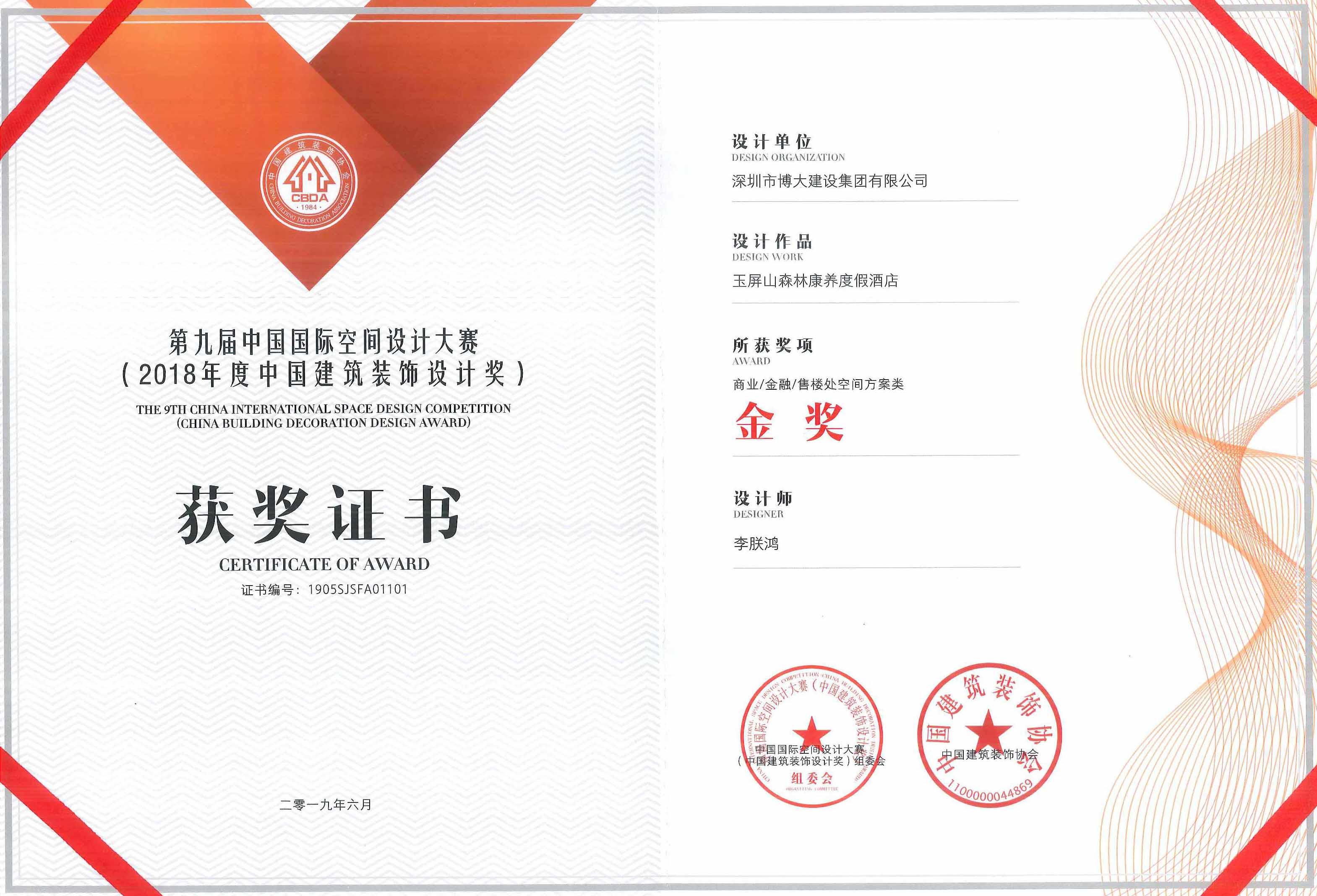 2018年度中國建筑裝飾設(shè)計金獎