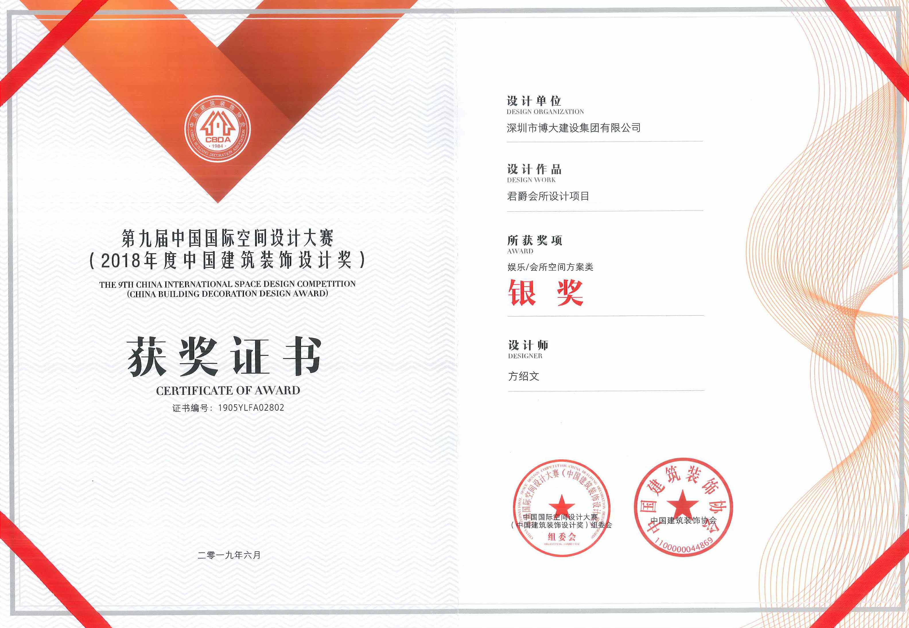 2018年度中國建筑裝飾設(shè)計銀獎