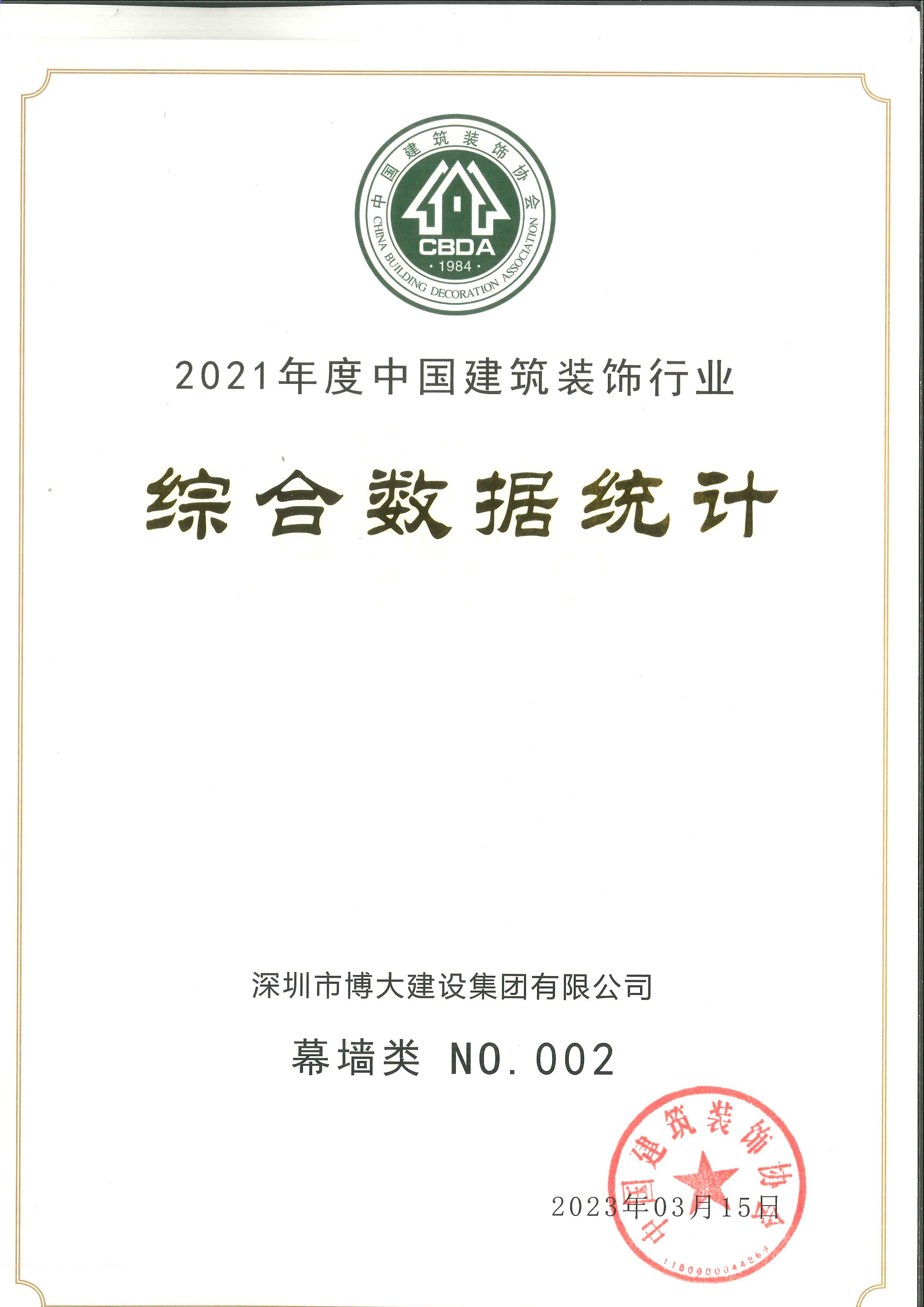 2021年度中國建筑裝飾行業(yè)百強幕墻類第二名