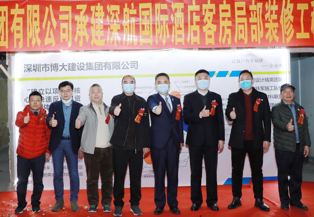 2021年1月14日,在開完深航國際酒店客房局部裝修工程第一次工地會(huì)議后,集團(tuán)副董事長黃河、第三戰(zhàn)區(qū)總經(jīng)理徐朝華與深航基建處副總經(jīng)理陳新、深航基建處工程管理中心譚波、深航酒店副總經(jīng)理肖強(qiáng)、深圳市中安項(xiàng)目管理有限公司總經(jīng)理趙坤強(qiáng)等一行領(lǐng)導(dǎo)參加了深航國際酒店開工典禮剪彩儀式。