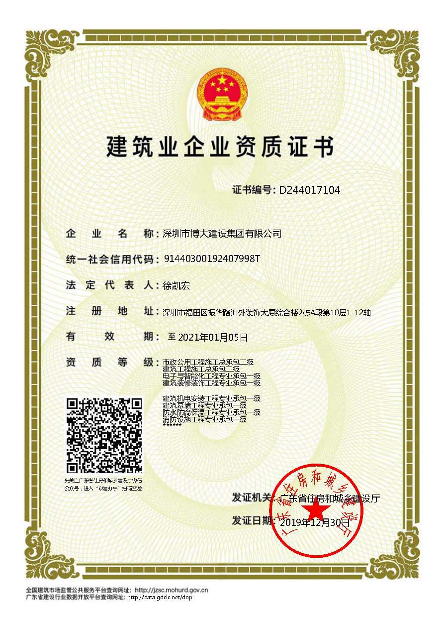 博大建設集團作為行業(yè)最具發(fā)展活力的領軍企業(yè),近年來發(fā)展速度迅猛,2019年繼續(xù)保持穩(wěn)步增長,業(yè)績過百億。在各級領導的關懷和全體家人的共同努力下,集團資質(zhì)建設取得新的進展,榮獲6項建筑資質(zhì)!