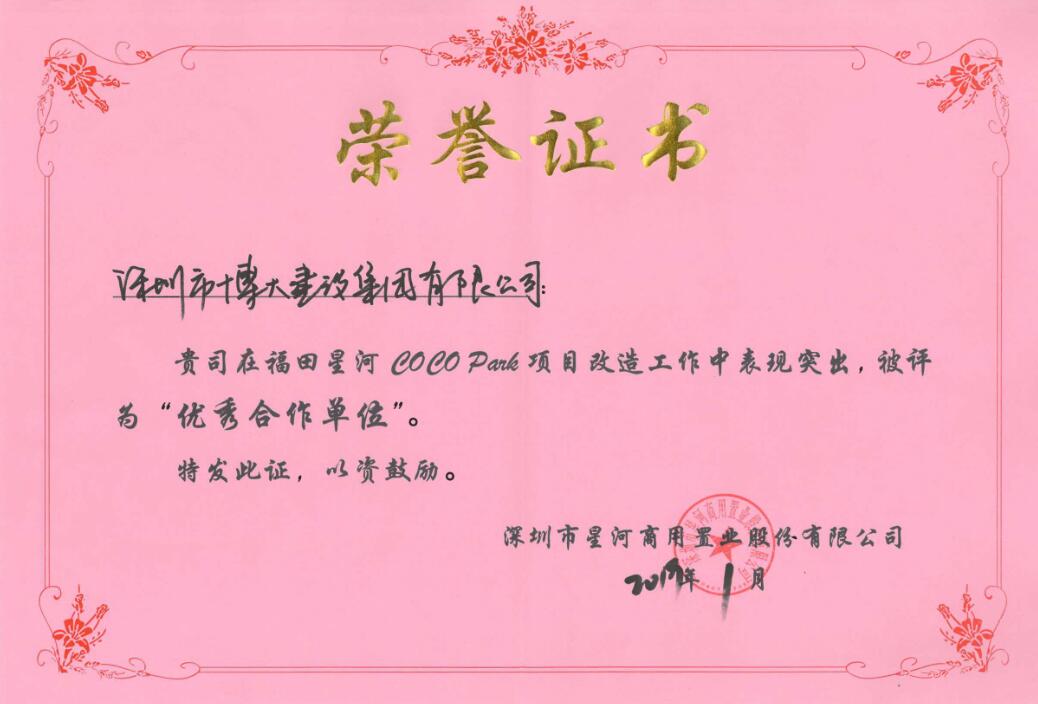 六、星河地產(chǎn)集團(tuán)2018年度優(yōu)秀供應(yīng)商