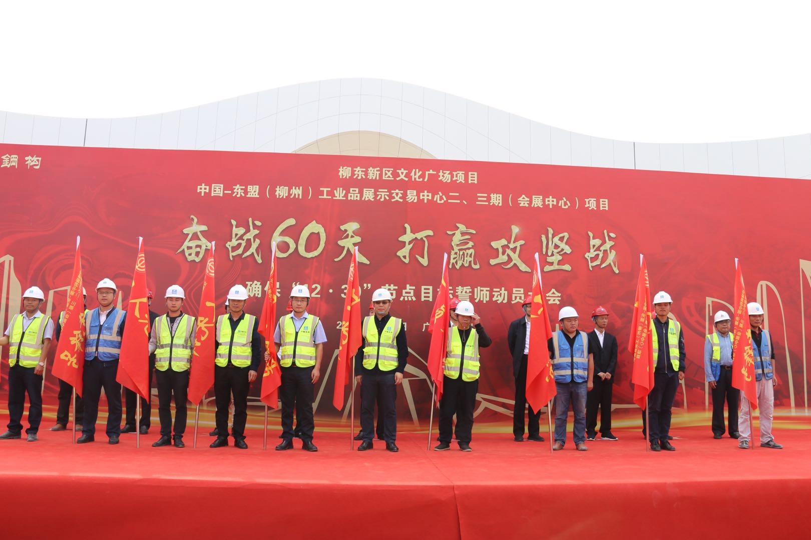奮戰(zhàn)45天,博大鐵軍誓言打贏柳州會展項目攻堅戰(zhàn)——中國-東盟(柳州)工業(yè)品展示交易中心項目部舉行攻堅誓師大會