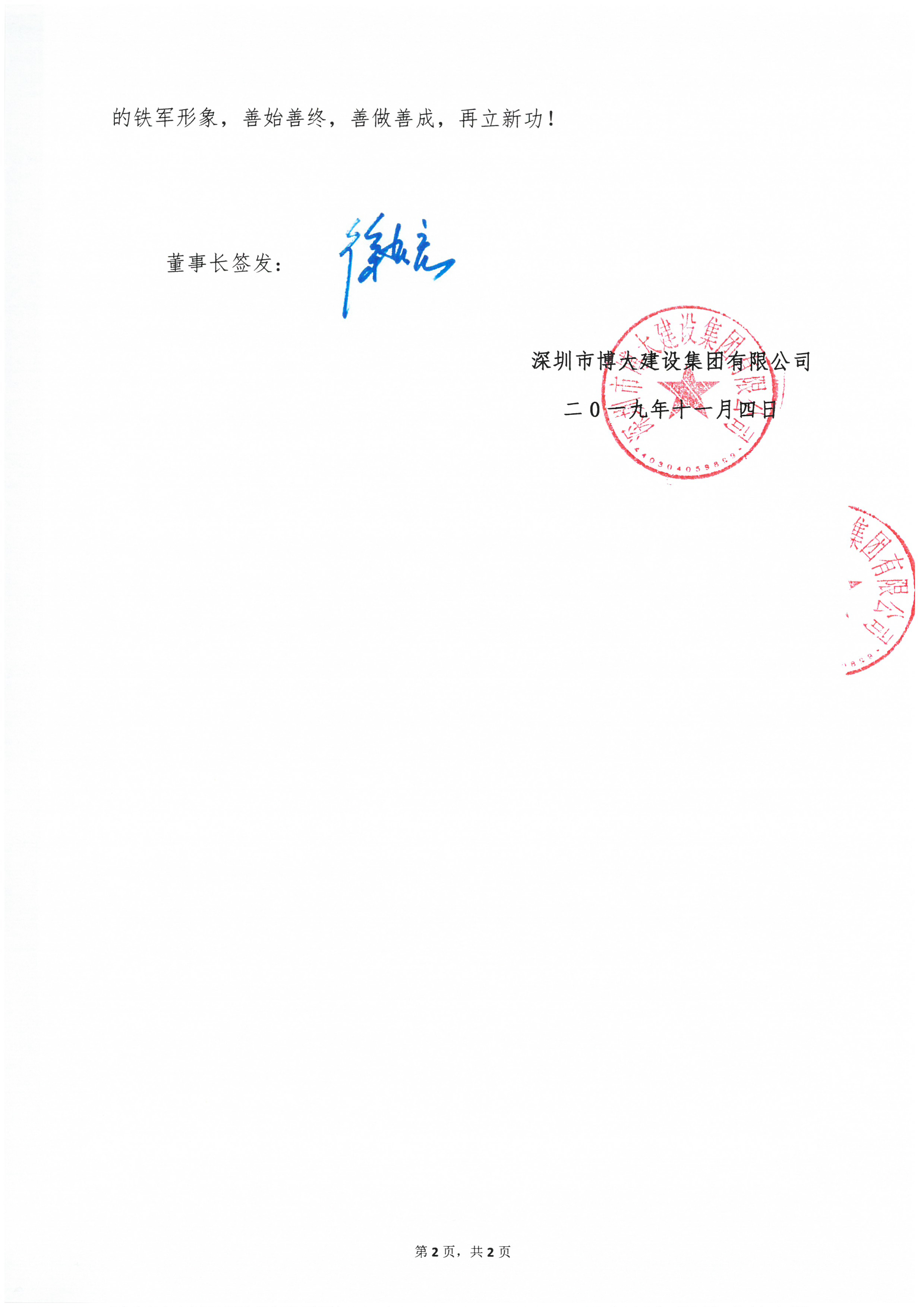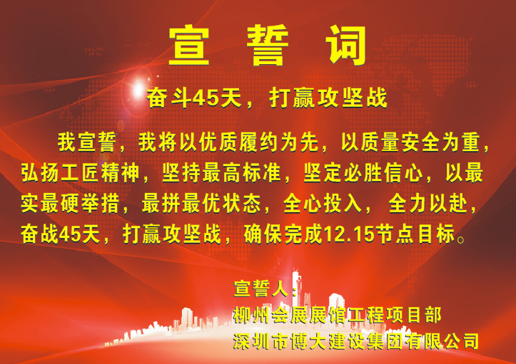 “我將以優(yōu)質(zhì)履約為先,以質(zhì)量安全為重;弘揚(yáng)工匠精神,堅持最高標(biāo)準(zhǔn),堅定必勝信心;以最實最硬舉措、最拼最優(yōu)狀態(tài);全力投入、全力以赴;奮戰(zhàn)45天,打贏攻堅戰(zhàn),確保完成12.15節(jié)點目標(biāo)!”