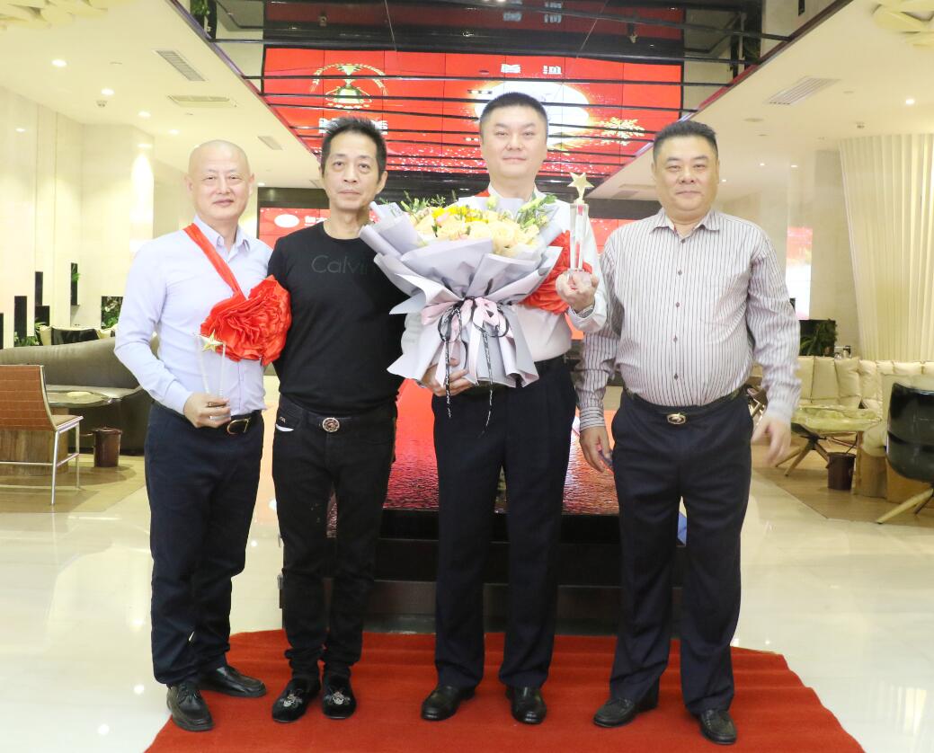 集團(tuán)副總裁、幕墻中心總經(jīng)理江東帶領(lǐng)團(tuán)隊(duì),在柳州會(huì)展中心二期幕墻工程中憑借精湛的施工、高效的服務(wù),贏得客戶的高度認(rèn)可,成功拓展柳州會(huì)展中心二期精裝修工程,被授予優(yōu)秀成果獎(jiǎng)。圖為黃河副董事長(zhǎng)與獲獎(jiǎng)?wù)吆嫌傲裟睢?/span>