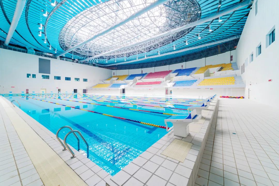 博大負(fù)責(zé)的施工區(qū)域涵蓋體育館、運(yùn)動(dòng)場、游泳館、人防地下室,聲學(xué)吸音等全部裝飾工程。其中運(yùn)動(dòng)場東、西看臺(tái)兩側(cè)均為弧形造型,現(xiàn)場工期緊、任務(wù)重,交叉作業(yè)多,協(xié)調(diào)難度大,配合要求高。