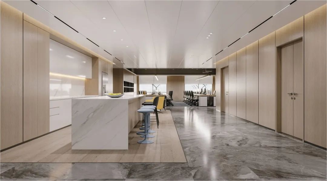 該辦公樓是集辦公,信息化,員工配套,培訓(xùn)會(huì)議,企業(yè)展廳為一體的綜合性辦公樓,包含2棟建筑,總面積約4.8萬㎡。其中:1號(hào)樓地上建筑面積1.8萬㎡,2號(hào)樓地上建筑面積2.8萬㎡,博物館建筑面積2000㎡。博大的施工范圍涵蓋一層接待大堂;二三層信息化機(jī)房與系統(tǒng)運(yùn)維;四五層職工餐廳;六至十二層科技辦公樓層;十三至十四層為企業(yè)特色辦公樓層;十五層培訓(xùn)會(huì)議樓層;十六層文化活動(dòng)中心,局部區(qū)域挑空作為羽毛球場地;十七層信合史館等在內(nèi)的全部施工區(qū)域。