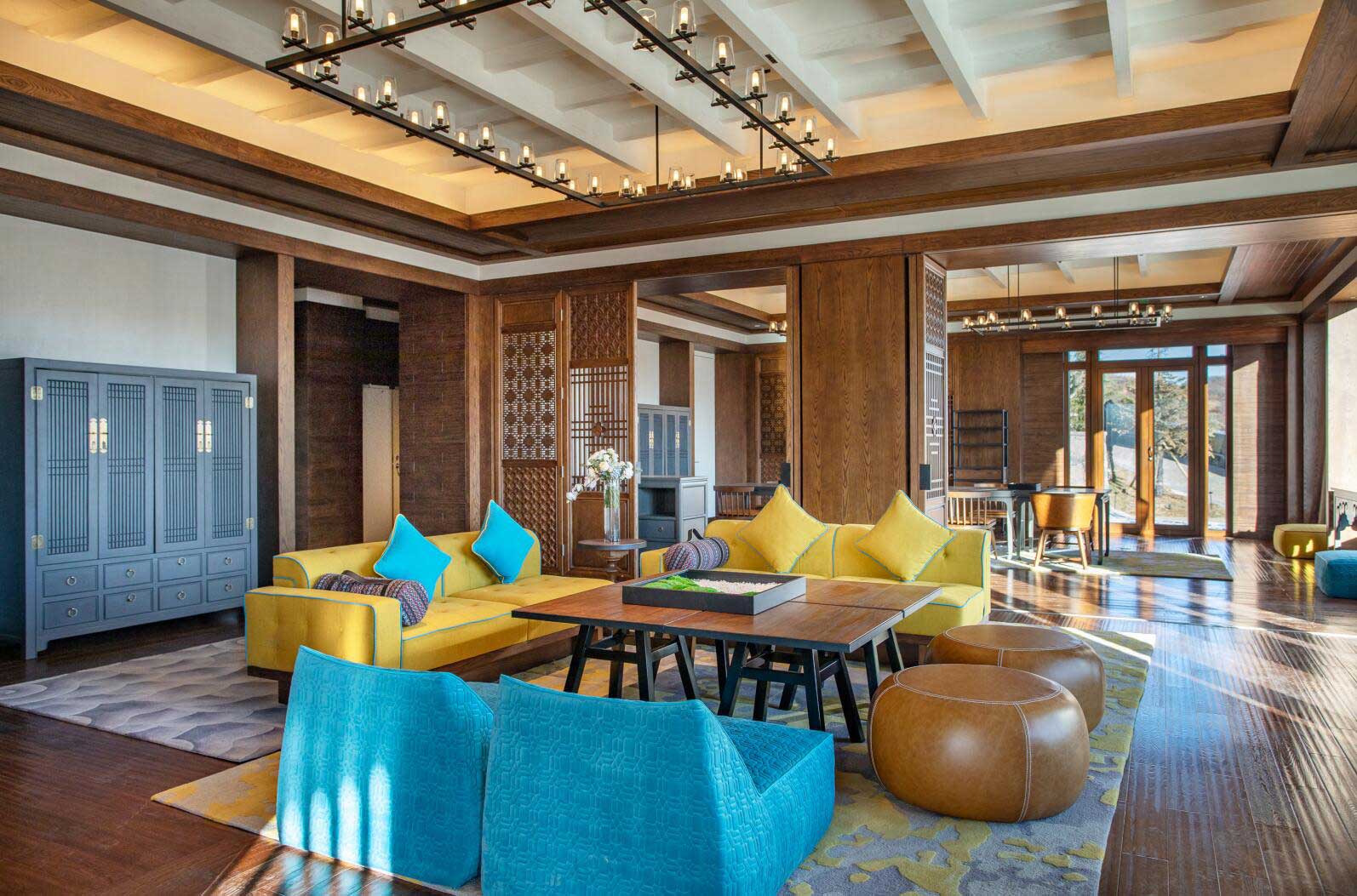 酒店設(shè)計(jì)由備受贊譽(yù)的泰國(guó)設(shè)計(jì)事務(wù)所P49 Deesign操刀,以尋找夢(mèng)想中的“香巴拉”“月光城”為靈感素材,用藏式傳統(tǒng)風(fēng)格進(jìn)行現(xiàn)代簡(jiǎn)約素凈演繹,為賓客呈現(xiàn)高原藏式鄰里文化。