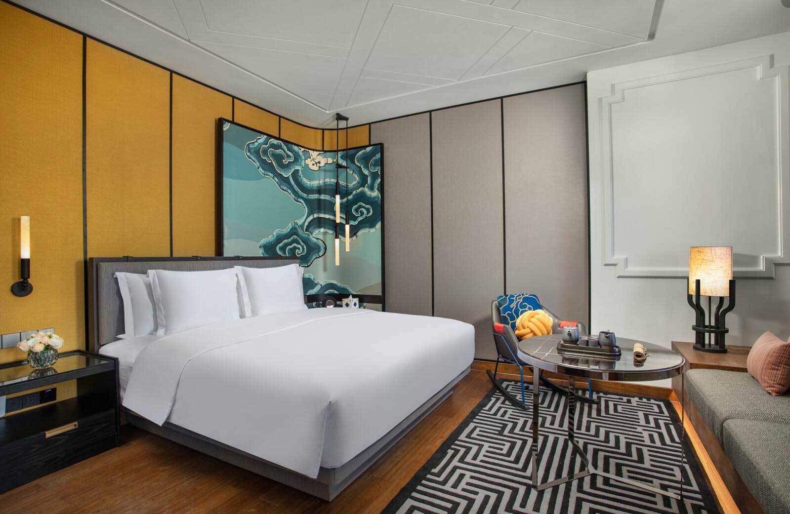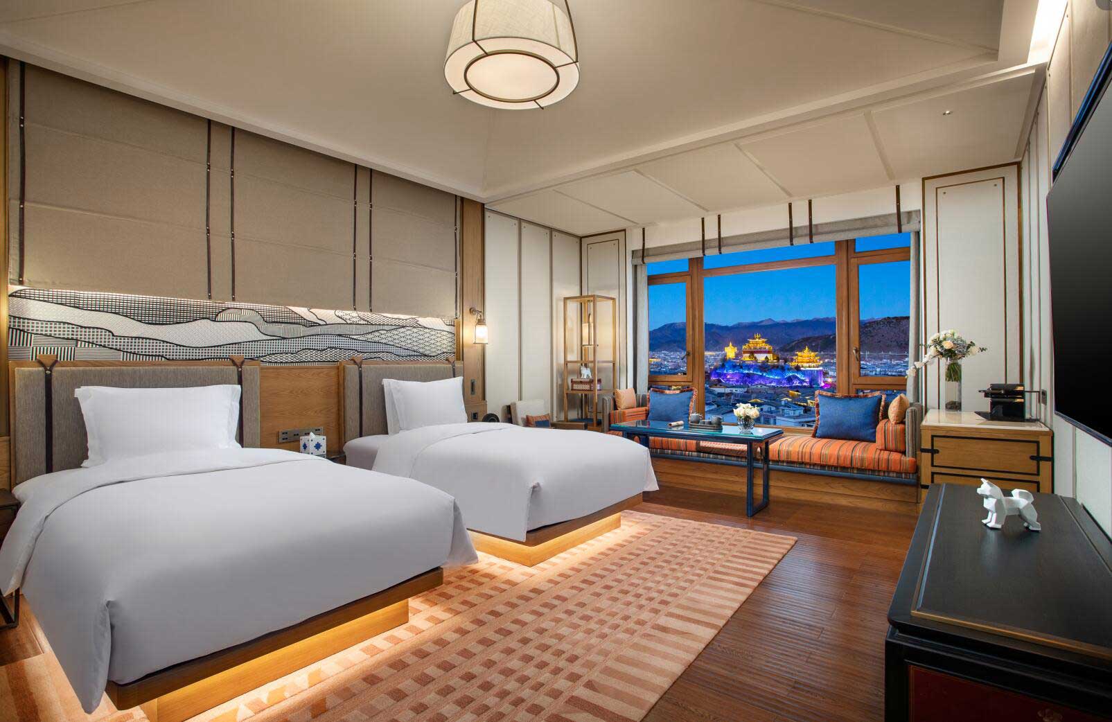 房間設(shè)計(jì)從藏地文化中汲取靈感,寫意回溯香格里拉鄰間故事,打造兼具民族風(fēng)韻和現(xiàn)代舒適的下榻空間,點(diǎn)綴精挑細(xì)選的工藝品及特色壁畫,房間的角落和細(xì)節(jié)處處可見充滿本地風(fēng)情的鄰間文化。開窗見景,入室賞藝,高品質(zhì)客房設(shè)施營(yíng)造了引人入勝的旅居氛圍。