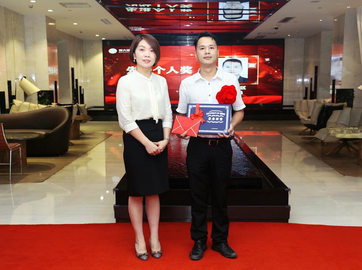集團(tuán)董事、運(yùn)營(yíng)總裁黃悠為銷(xiāo)售進(jìn)步獎(jiǎng)獲得者葉繼平頒獎(jiǎng)